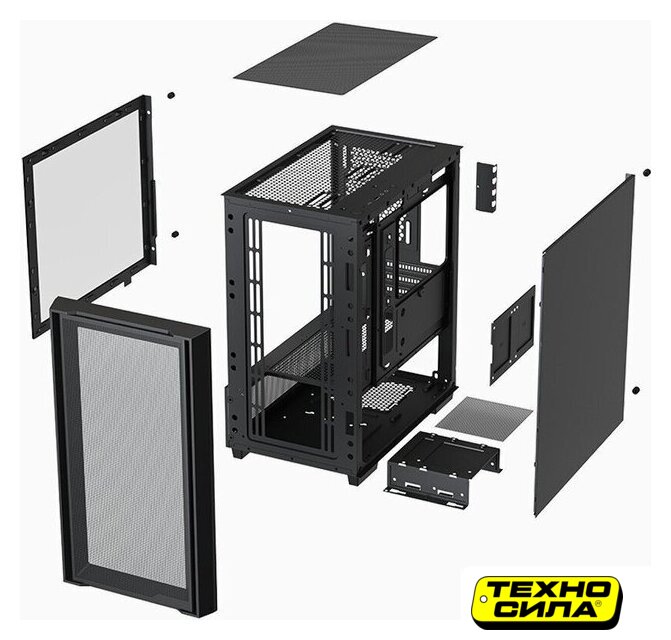 Mid Tower, БП отсутствует, для плат ATX/micro-ATX/mini-ITX, окно: закаленное стекло, видеокарта до 335 мм, охлаждение ЦП до 166 мм, пылевые фильтры, 2xUSB-A 3.2 5Гбит/с, цвет черный