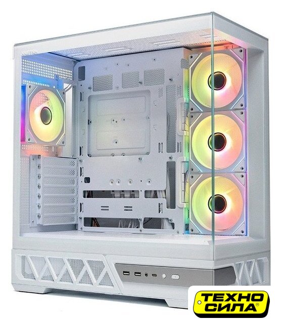 аквариум/Mid Tower, БП отсутствует, для плат ATX/micro-ATX/YTX, в комплекте 6 вентиляторов, окно: закаленное стекло, видеокарта до 400 мм, охлаждение ЦП до 175 мм, пылевые фильтры, 2xUSB-A 3.2 5Гбит/с, 1xUSB-C 3.2 10Гбит/с, цвет белый
