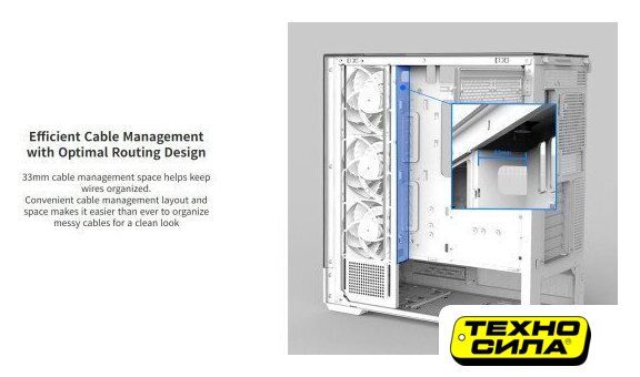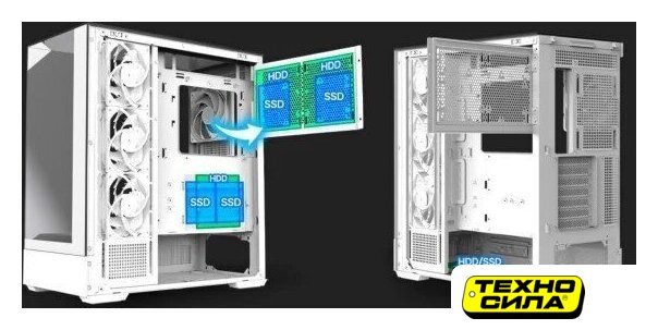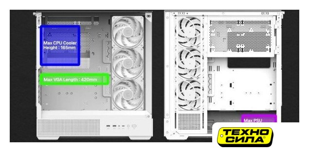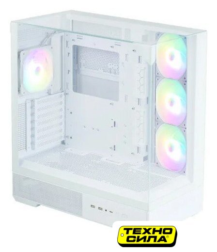 Mid Tower, БП отсутствует, для плат ATX/micro-ATX/mini-ITX, в комплекте 4 вентилятора, окно: закаленное стекло, видеокарта до 410 мм, охлаждение ЦП до 176 мм, пылевые фильтры, 2xUSB-A 3.2 5Гбит/с, 1xUSB-C 3.2 5Гбит/с, цвет белый