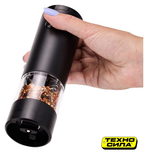 электроперечница, питание от аккумулятора, чаша 0.07 л, материал чаши: пластик, материал корпуса: металл/пластик, нержавеющая сталь/черный