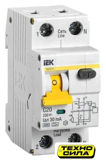 32 А, 1P, кривая тока: C, ном. отключающая способность 6 кА, тип дифф. тока A, ток утечки 30 мА