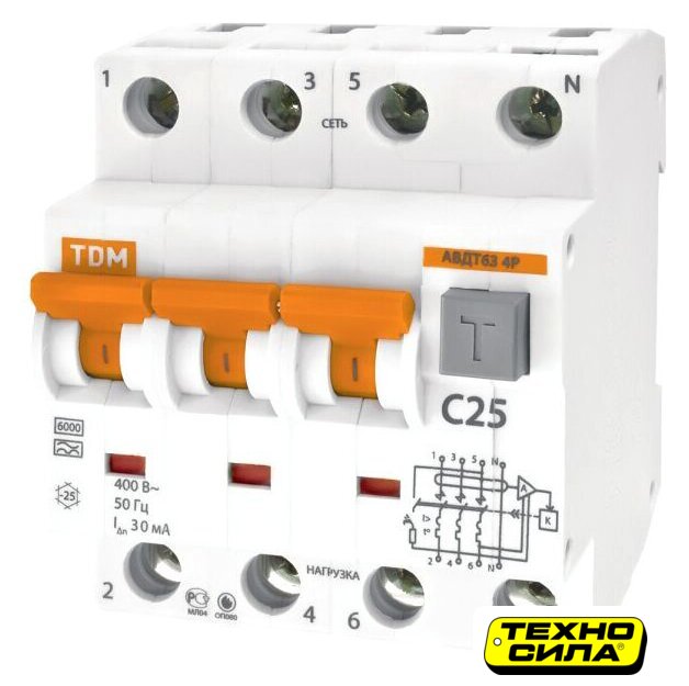 32 А, 1P, кривая тока: C, ном. отключающая способность 6 кА, тип дифф. тока A, ток утечки 30 мА