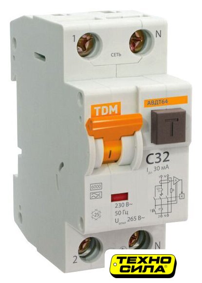 32 А, 1P, кривая тока: C, ном. отключающая способность 6 кА, тип дифф. тока A, ток утечки 30 мА