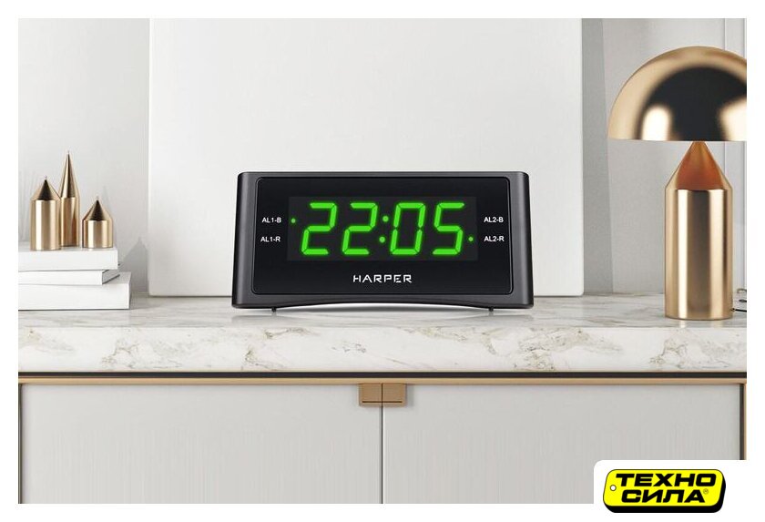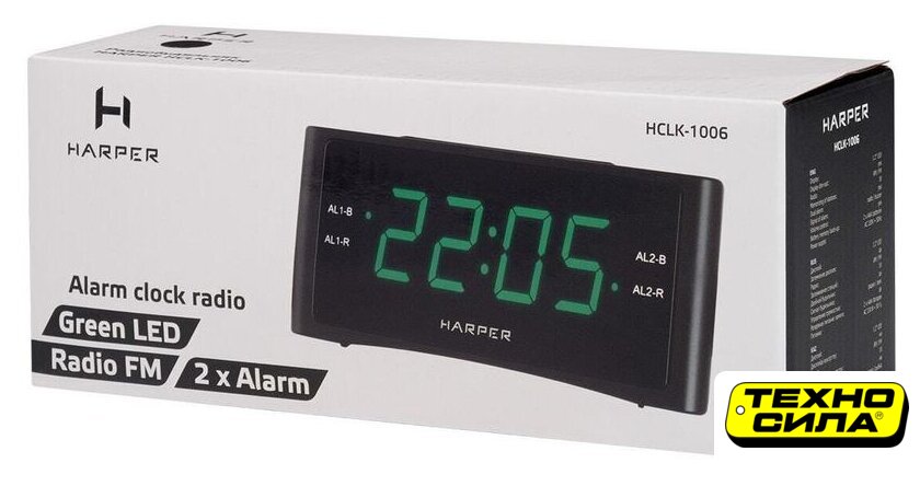 цифровой тюнер FM/AM, экран светодиодный 1.2", два будильника