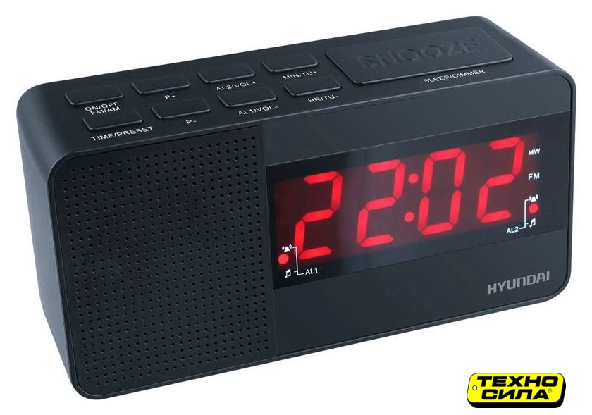 прямоугольная форма, стиль: современный, питание: от сети, экран светодиодный, два будильника, радио, динамик