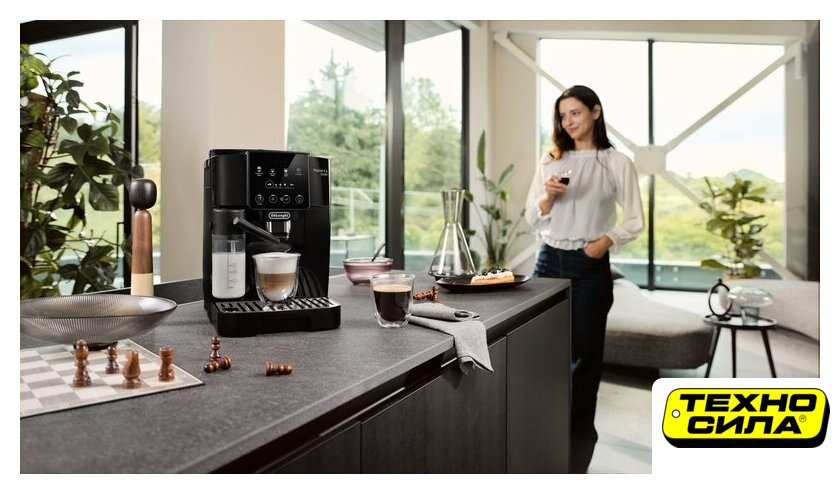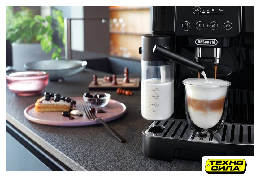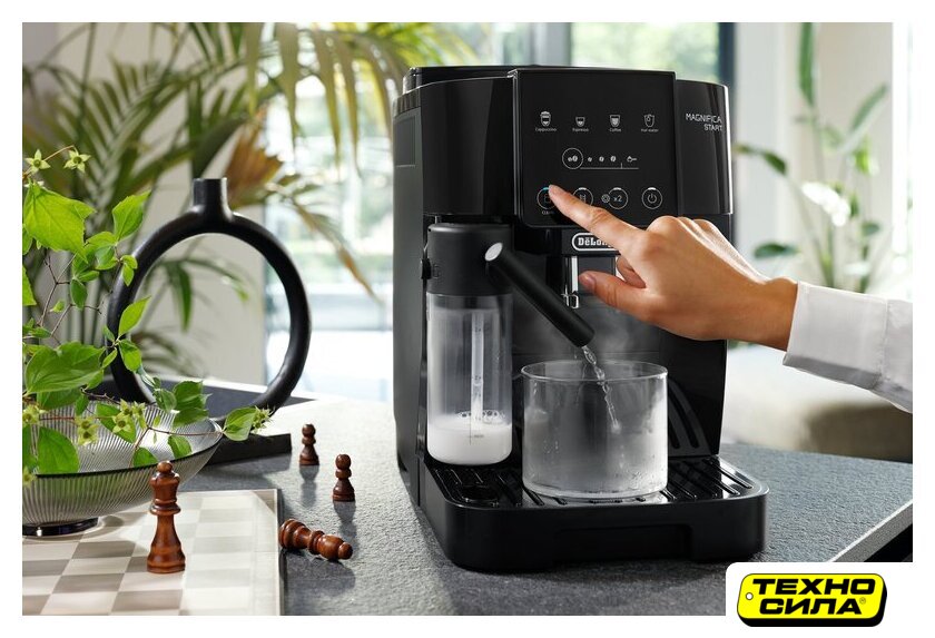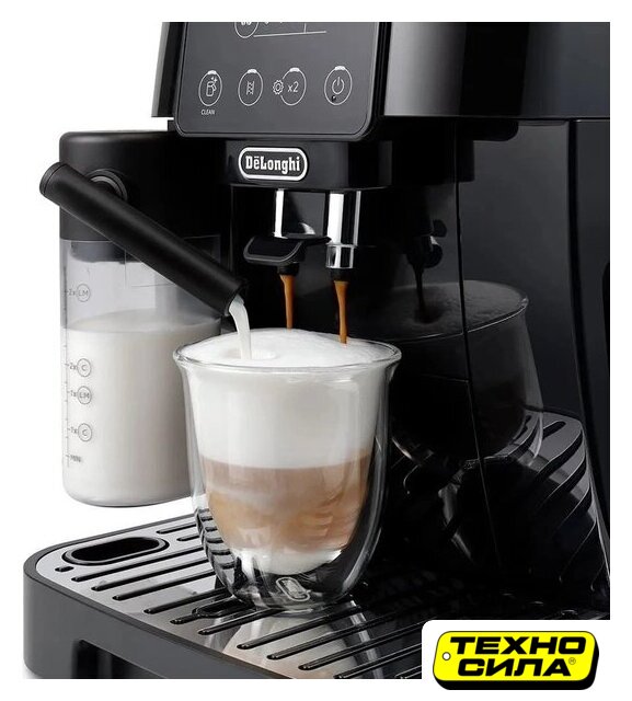 1500 Вт, корпус металл/пластик, капучинатор автоматический, используемый кофе: зерновой, цвет серебристый/черный