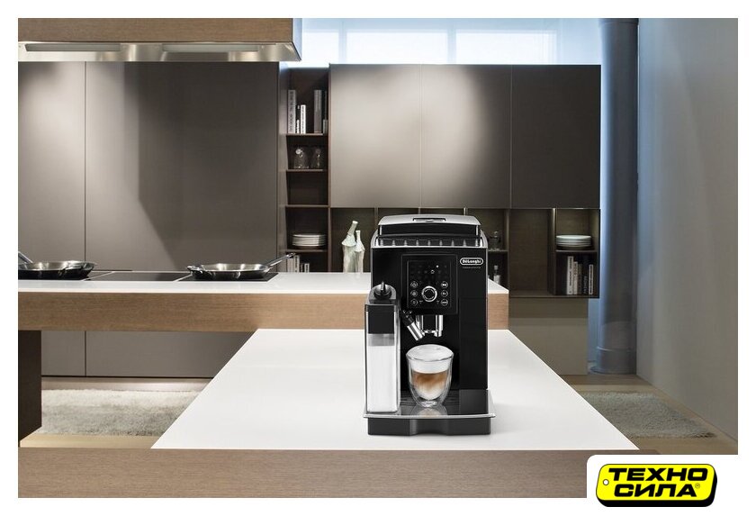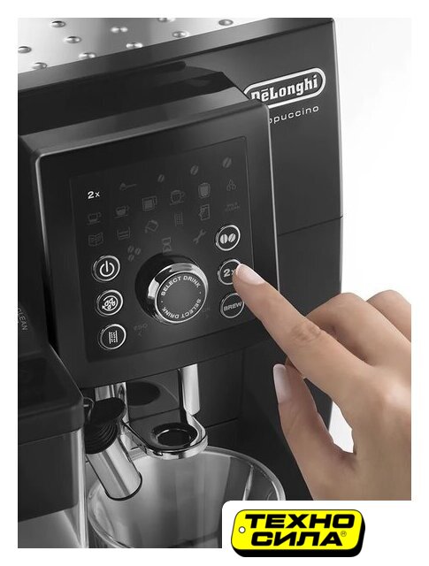 кофемашина, корпус пластик, капучинатор автоматический, используемый кофе: молотый/зерновой, цвет нержавеющая сталь/черный