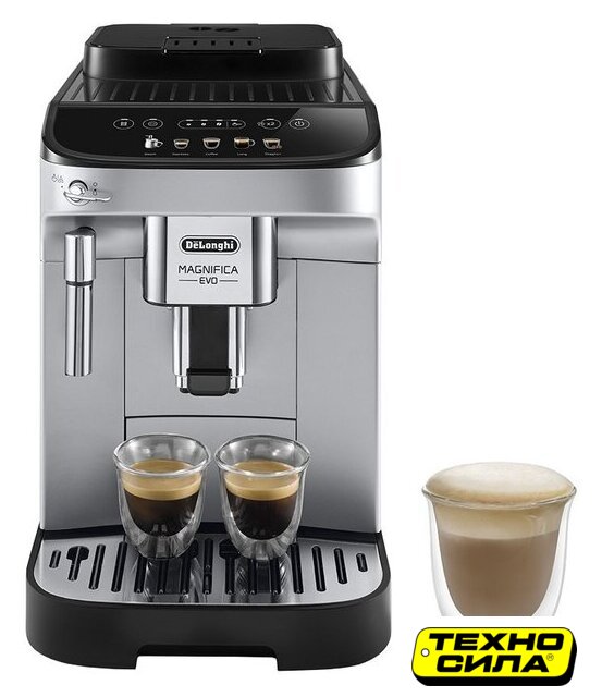кофемашина, корпус пластик, капучинатор ручной, используемый кофе: молотый/зерновой, цвет нержавеющая сталь/черный