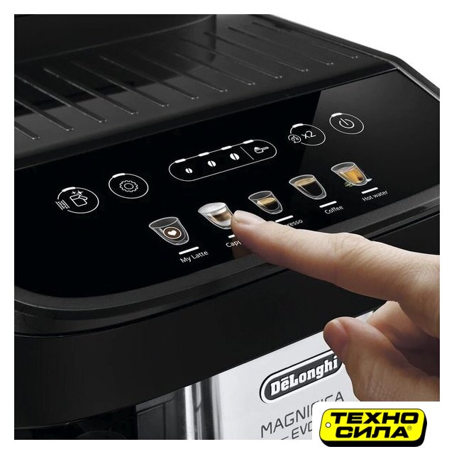 кофемашина, корпус пластик, капучинатор ручной, используемый кофе: молотый/зерновой, цвет серебристый/черный