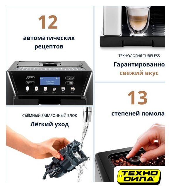 кофемашина, 1450 Вт, корпус пластик, капучинатор автоматический, используемый кофе: зерновой, цвет белый/черный