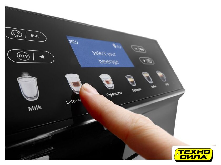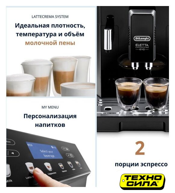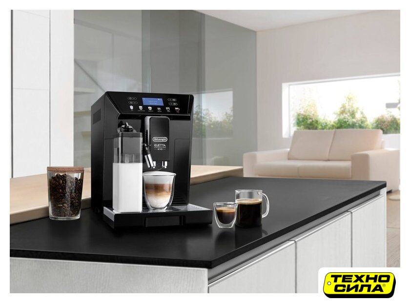 кофемашина, 1450 Вт, корпус пластик, капучинатор автоматический, используемый кофе: молотый/зерновой, цвет черный