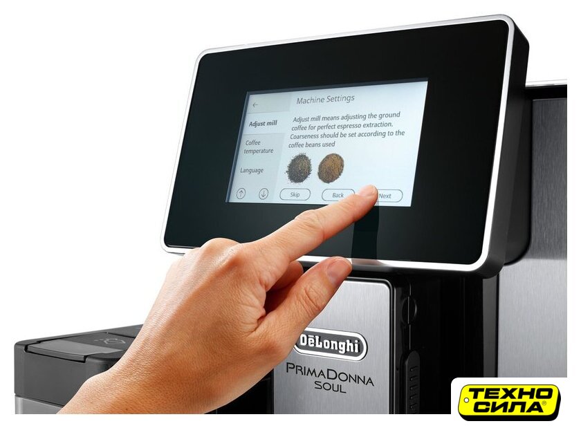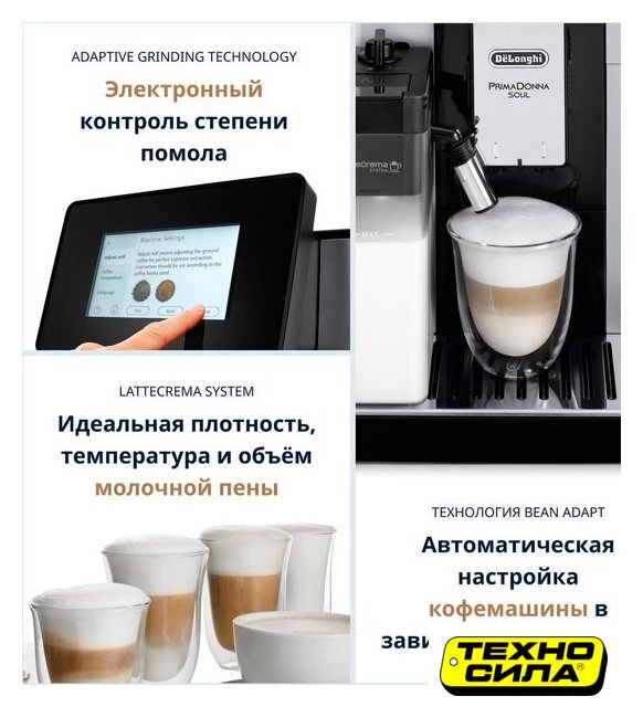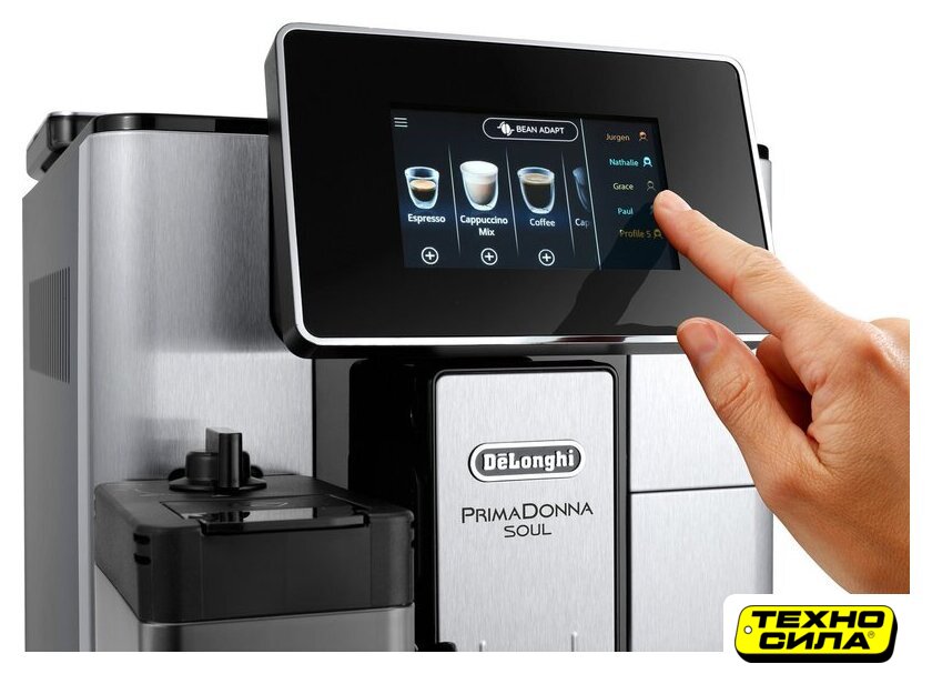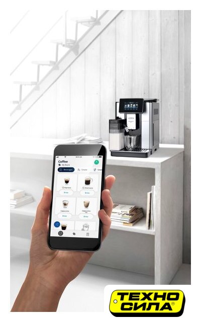 кофемашина, 1600 Вт, корпус пластик, капучинатор автоматический, используемый кофе: зерновой, цвет нержавеющая сталь