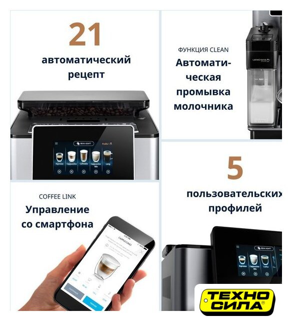 Программы приготовления | эспрессо, лунго, американо, капучино, латте макиато, флэт уайт, латте, доппио, кортадо, лонг блэк, горячее молоко, кофе в кофейник, холодный кофе |