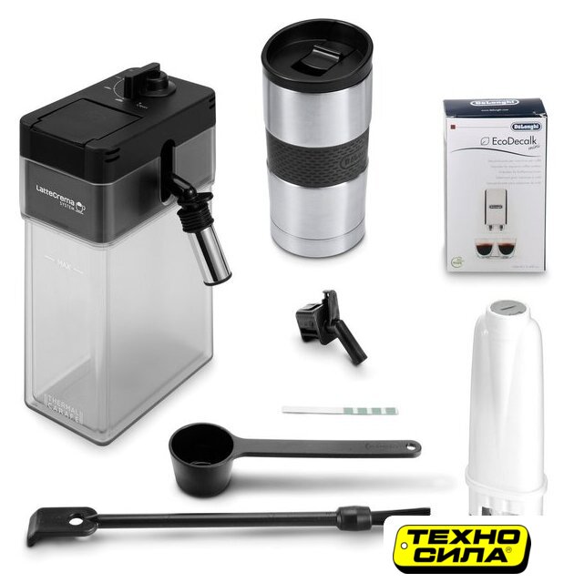 кофемашина, 1450 Вт, корпус металл/пластик, капучинатор автоматический, используемый кофе: молотый/зерновой, цвет нержавеющая сталь/черный