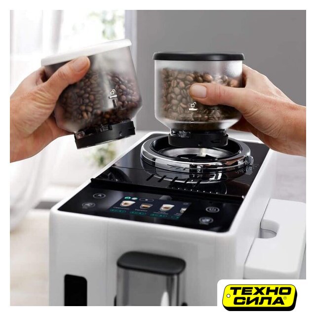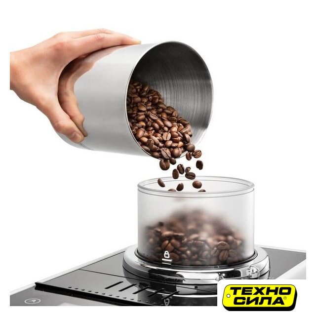 кофемашина, 1450 Вт, корпус металл/пластик, капучинатор автоматический, используемый кофе: молотый/зерновой, цвет серый/черный
