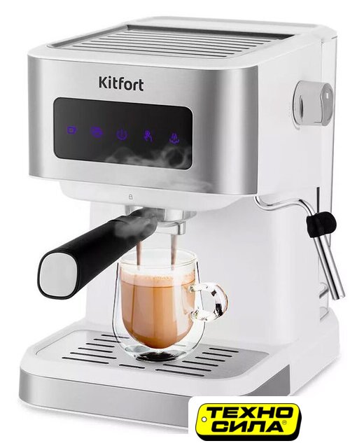 рожковая бойлерная кофеварка, 850 Вт, корпус металл/пластик, капучинатор ручной, используемый кофе: молотый, цвет белый/серебристый
