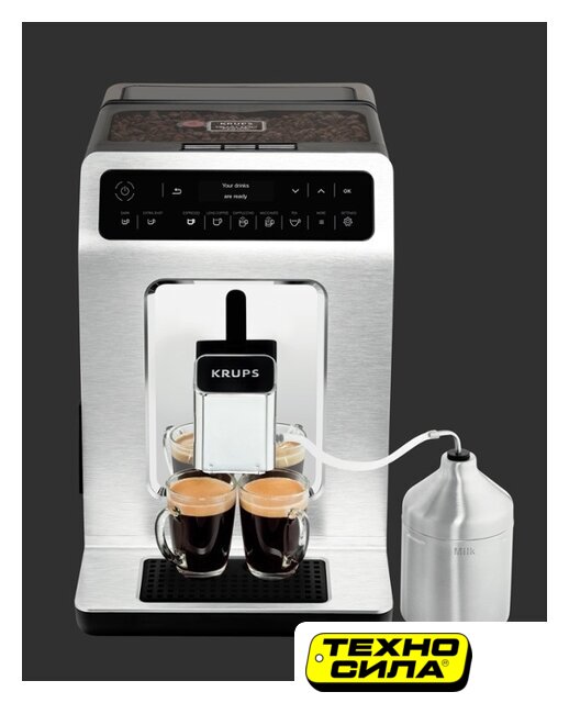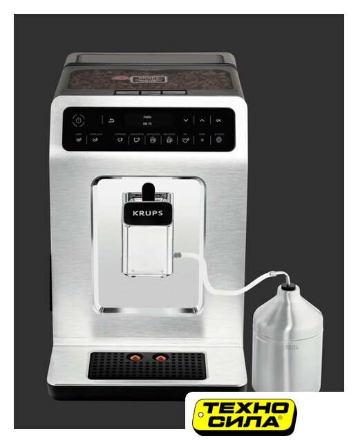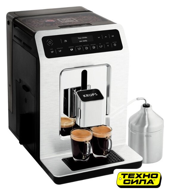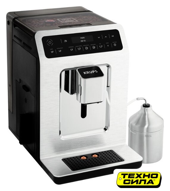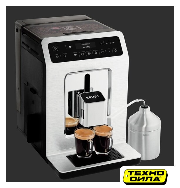 кофемашина, 1450 Вт, корпус металл/пластик, капучинатор автоматический, используемый кофе: молотый/зерновой, цвет нержавеющая сталь/черный