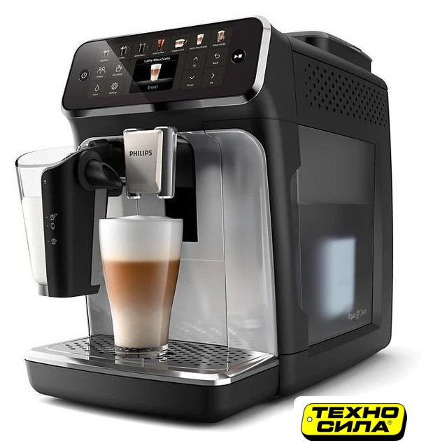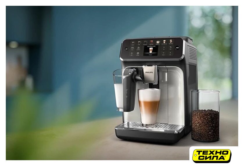 кофемашина, 1500 Вт, корпус пластик, капучинатор автоматический, используемый кофе: молотый/зерновой, цвет черный/шампань