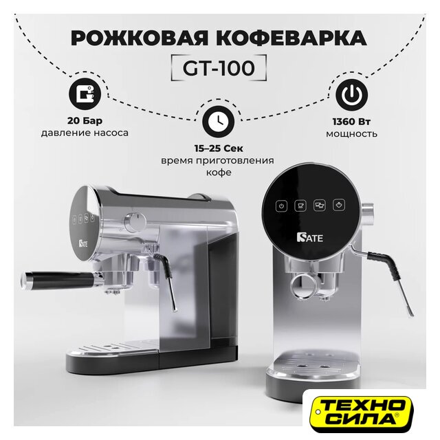 рожковая помповая кофеварка, 1100 Вт, корпус пластик, капучинатор ручной, используемый кофе: молотый, цвет черный