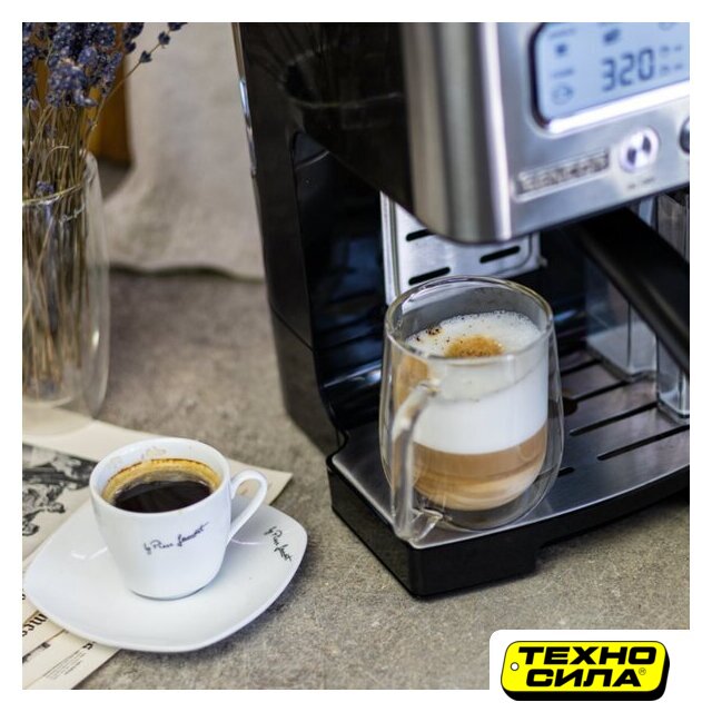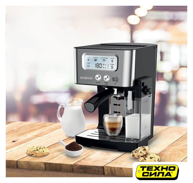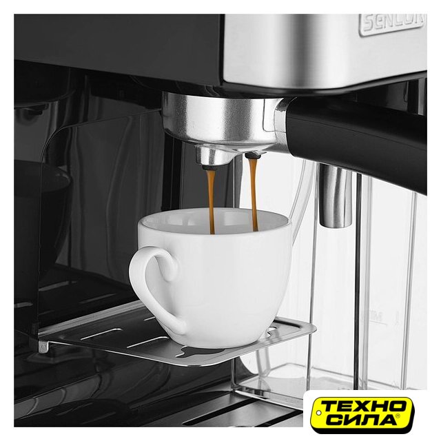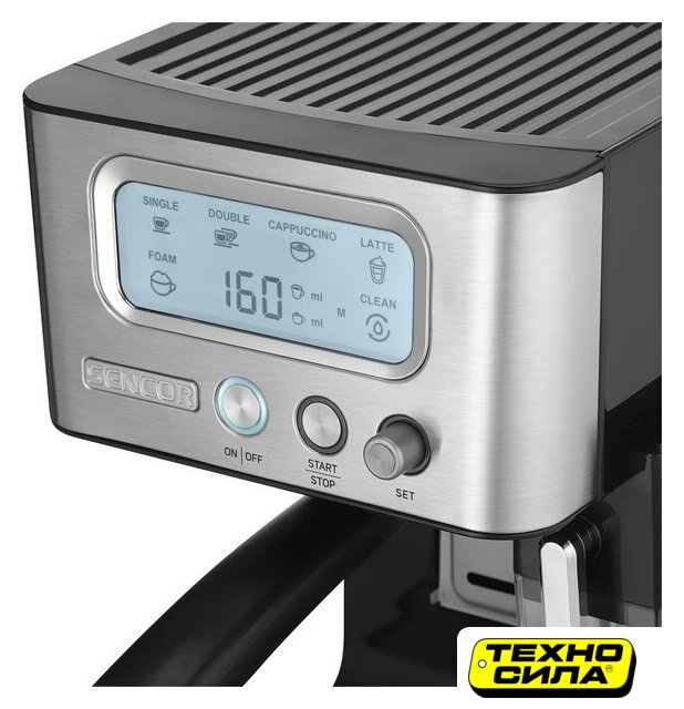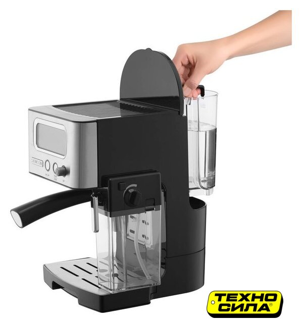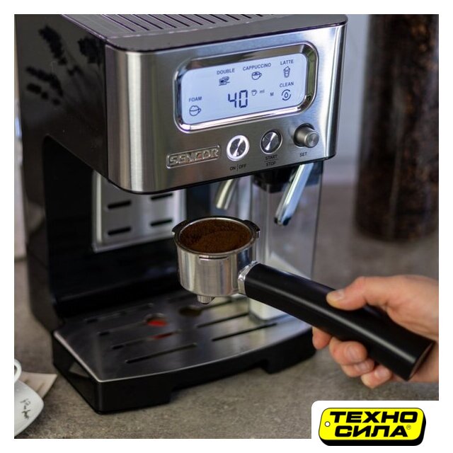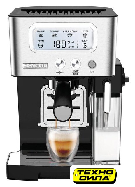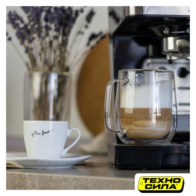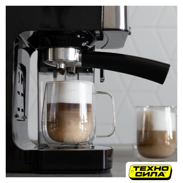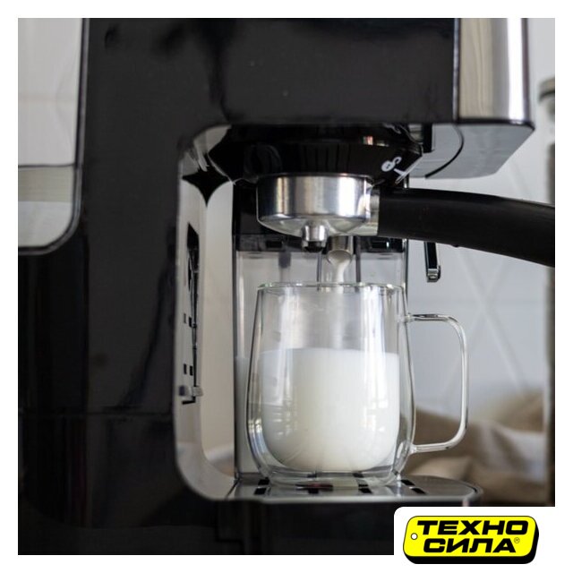 рожковая помповая кофеварка, 1470 Вт, корпус металл/пластик, капучинатор автоматический, используемый кофе: молотый, цвет нержавеющая сталь/черный