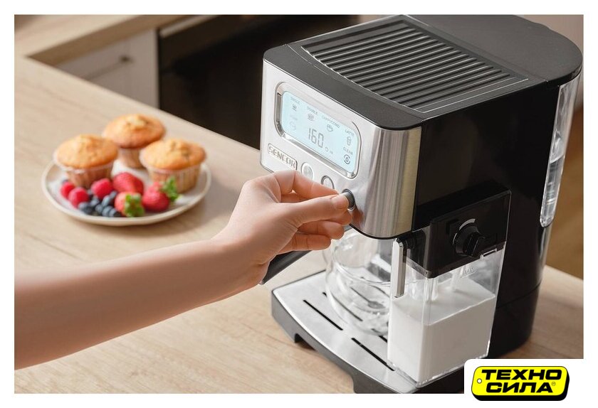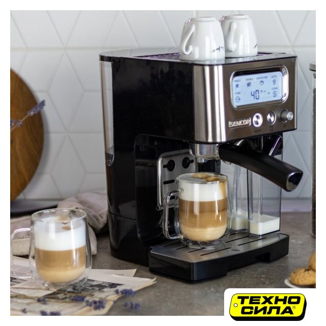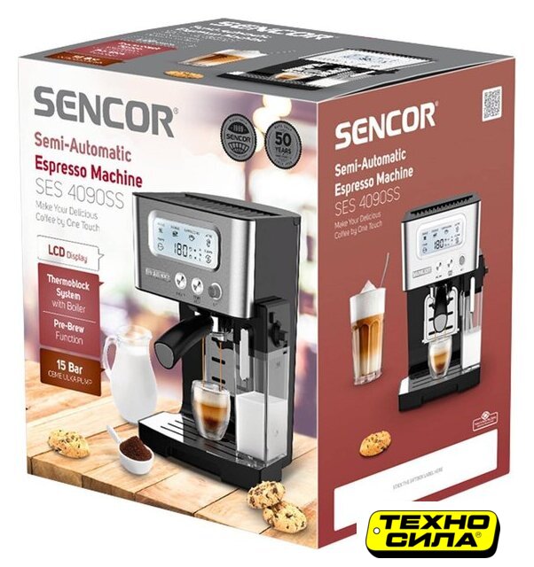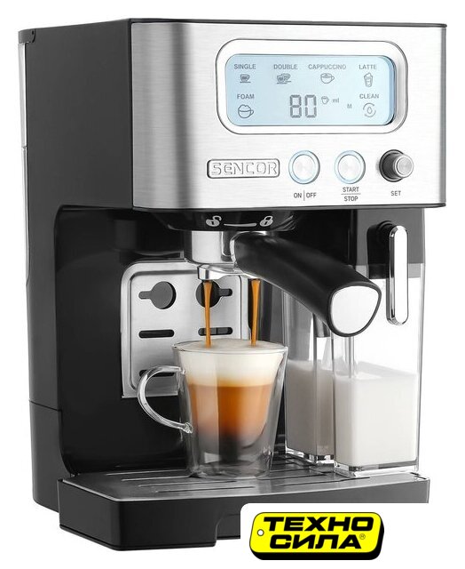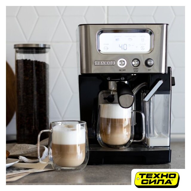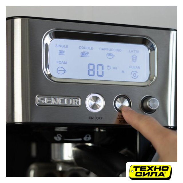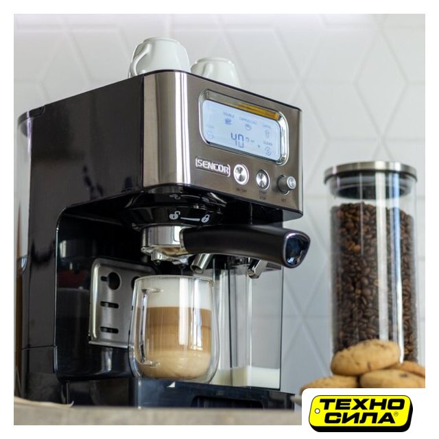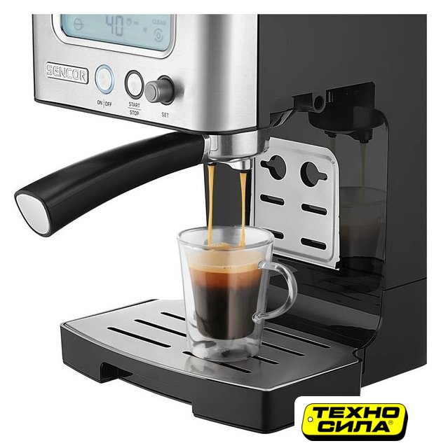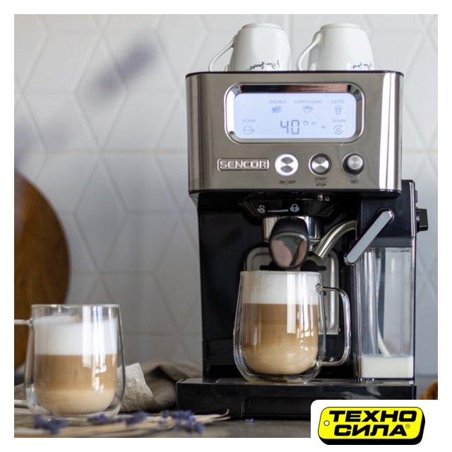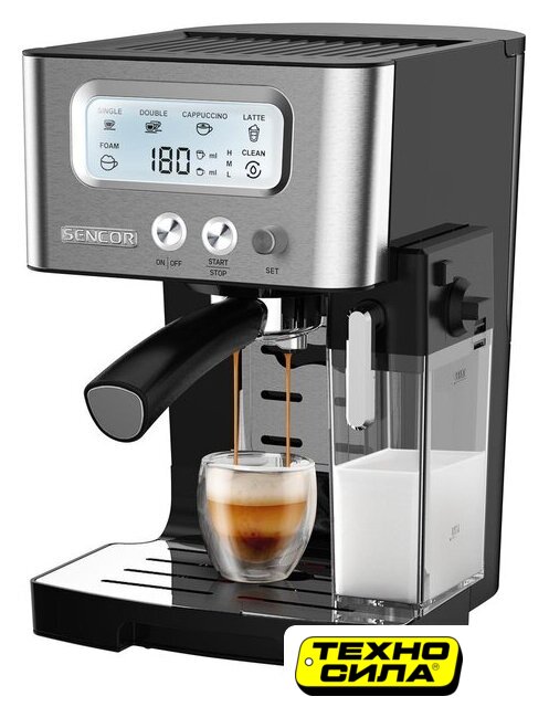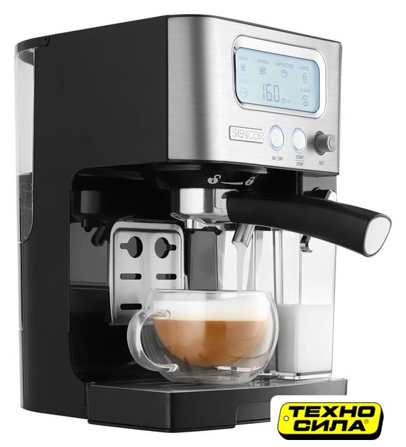 рожковая помповая кофеварка, 1470 Вт, корпус металл/пластик, капучинатор автоматический, используемый кофе: молотый, цвет нержавеющая сталь/черный