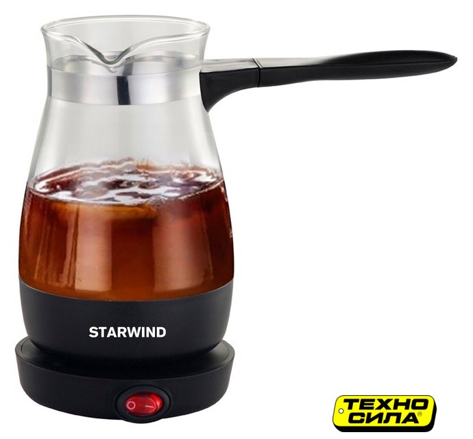 электрическая турка, 480 Вт, корпус пластик/стекло, используемый кофе: молотый, цвет черный