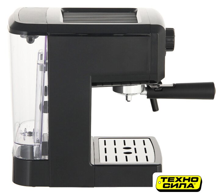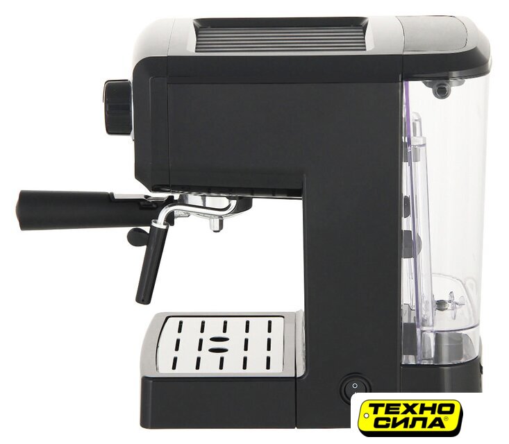 рожковая помповая кофеварка, 850 Вт, корпус пластик, капучинатор ручной, используемый кофе: молотый, цвет нержавеющая сталь/черный