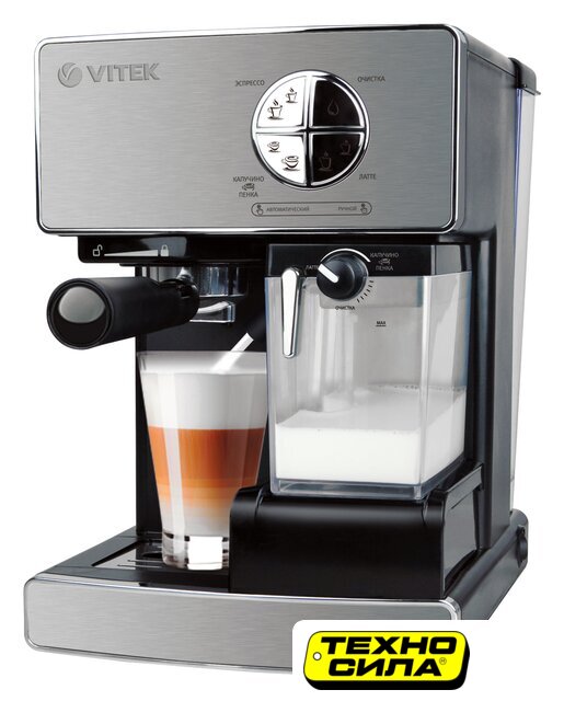 рожковая помповая кофеварка, 1450 Вт, корпус металл/пластик, капучинатор автоматический, используемый кофе: молотый, цвет нержавеющая сталь/черный