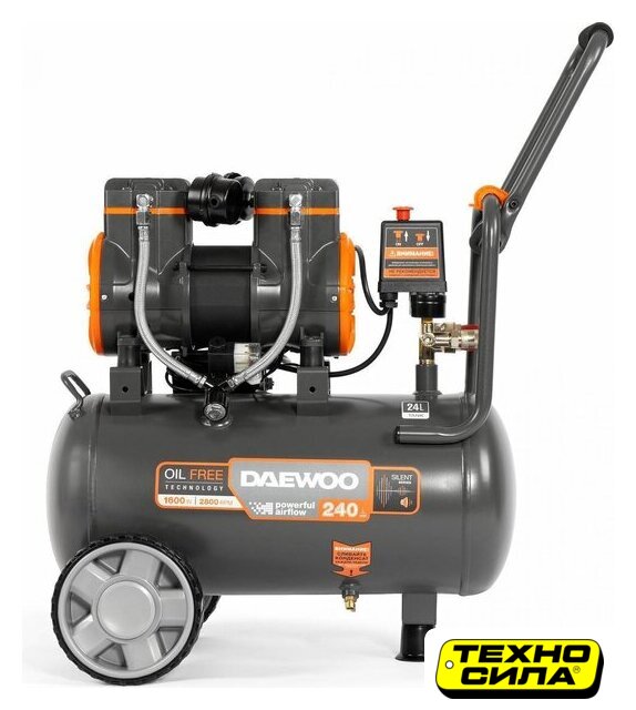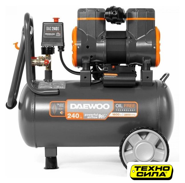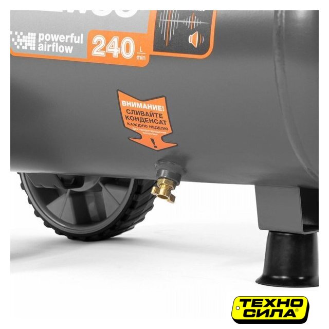 Комплектация | КомпрессорВоздушный фильтр 2 штРезиновые опорыКолесо транспортировочное 2 штРуководство по эксплуатацииГарантийный талон |