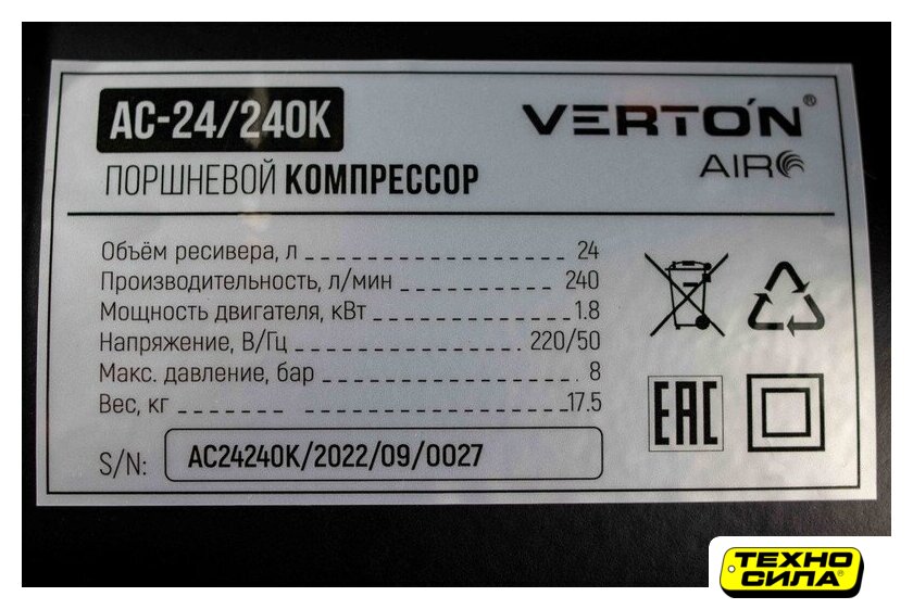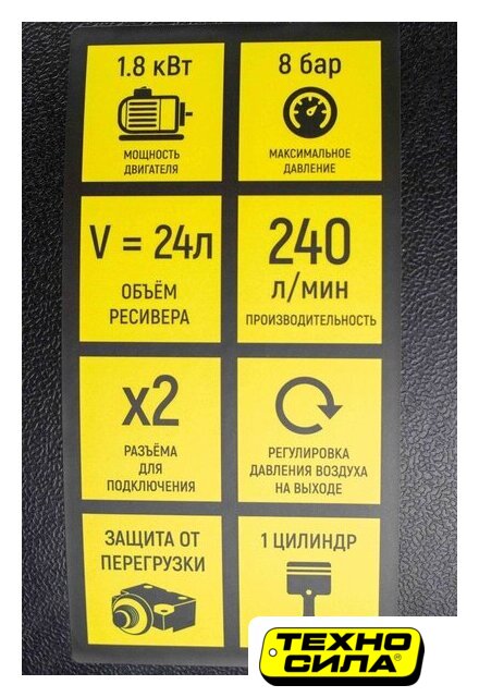 Комплектация | 1. Компрессор - 1 шт2. Колёса - 2 шт3. Воздушный фильтр - 1 шт4. Руководство по эксплуатации - 1 шт5. Сапун - 1 шт |