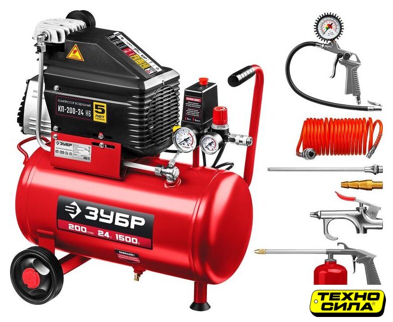 Комплектация | КомпрессорКолесо 2 шт.Фильтр воздушныйОпора резиноваяНабор крепежныйНабор пневмоинструментов:-Спиральный шланг 5 м-Пистолет для продувки-Пистолет для накачки шин, с манометром-Пистолет для вязких жидкостей, с бачком-Насадка для продувки-Насадка для накачки матрасовИнструкция по безопасностиРуководство по эксплуатации |