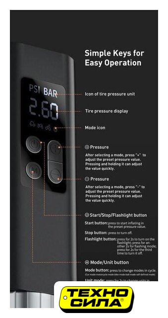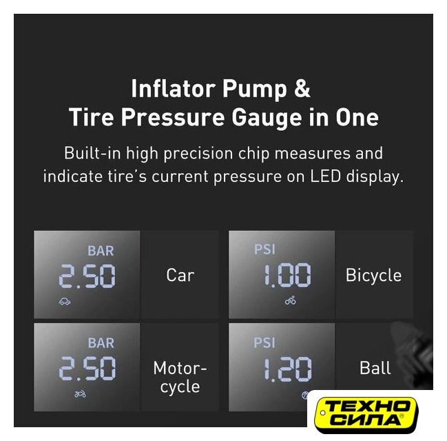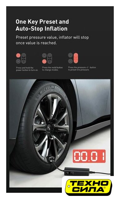 Функциональные особенности | автоотключение при достижении заданного давления, автоматическое определение давления |