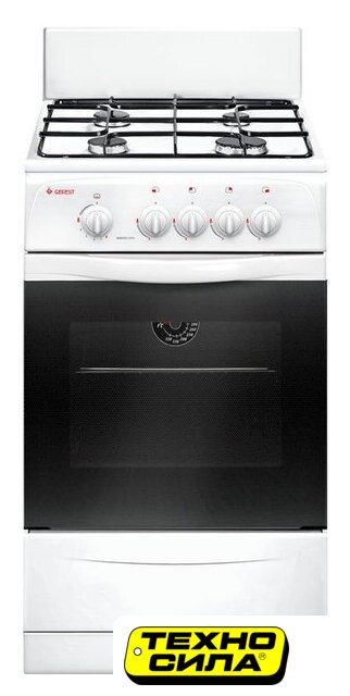 газовая панель + газовый духовой шкаф, газ-контроль конфорок, поверхность: эмалированная сталь, крышка из закалённого стекла, управление механическое, таймер механический, размеры (ШхГхВ): 50x60x85 см, цвет белый