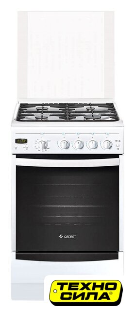 газовая панель + электрический духовой шкаф, поверхность: закаленное стекло, энергопотребление B, управление механическое, таймер механический, размеры (ШхГхВ): 50x58.5x85 см, цвет белый
