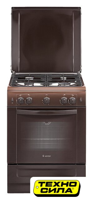 газовая панель + газовый духовой шкаф, газ-контроль конфорок, поверхность: эмалированная сталь, крышка из эмалированной стали, управление механическое, без таймера, размеры (ШхГхВ): 50x57x85 см, цвет коричневый