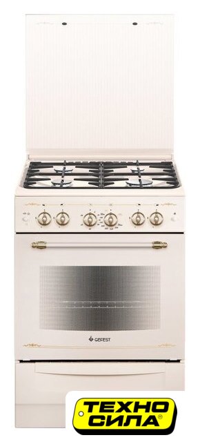 газовая панель + газовый духовой шкаф, поверхность: эмалированная сталь, крышка из закалённого стекла, управление механическое, таймер механический, размеры (ШхГхВ): 60x60x85 см, цвет белый