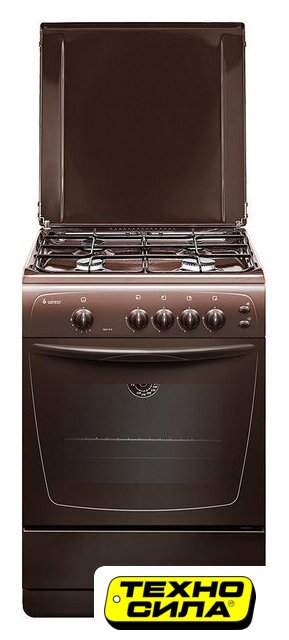 газовая панель + газовый духовой шкаф, газ-контроль конфорок, поверхность: эмалированная сталь, крышка из эмалированной стали, управление механическое, без таймера, размеры (ШхГхВ): 50x57x85 см, цвет коричневый