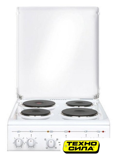 электрическая панель + электрический духовой шкаф, поверхность: эмалированная сталь, крышка из эмалированной стали, управление механическое, таймер механический, размеры (ШхГхВ): 50x58.5x85 см, цвет белый
