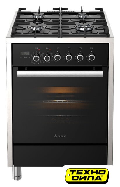 газовая панель + газовый духовой шкаф, газ-контроль конфорок, поверхность: закаленное стекло, управление механическое, таймер электронный, размеры (ШхГхВ): 60x60x85 см, цвет черный
