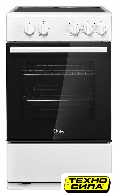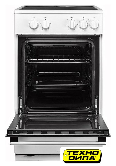 HiLight панель + электрический духовой шкаф, поверхность: cтеклокерамика, энергопотребление B, управление механическое, без таймера, размеры (ШхГхВ): 50x58.5x85 см, цвет белый