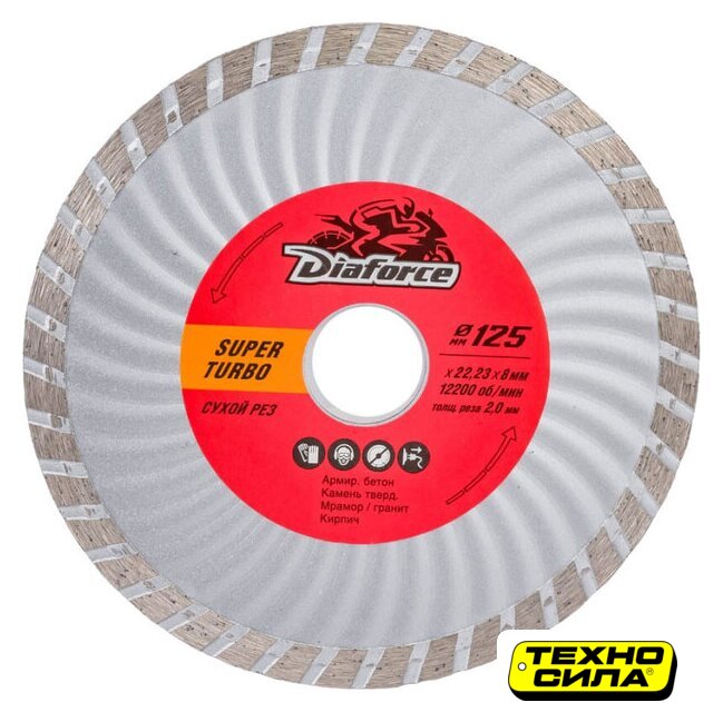 бетон/гранит/кирпич/камень/мрамор/железобетон, 6650 об/мин, сухая резка, 230 мм, посадочный диаметр 22 мм