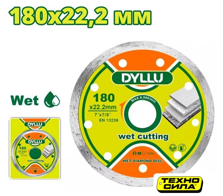 1 в наборе, 8500 об/мин, мокрая/сухая резка, 180 мм, посадочный диаметр 22.23 мм