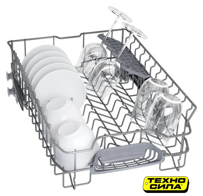 Особенности верхней корзины | регулировка положения по высоте, держатели для бокалов |