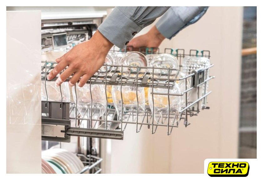 Особенности верхней корзины | регулировка положения по высоте, держатели для бокалов |