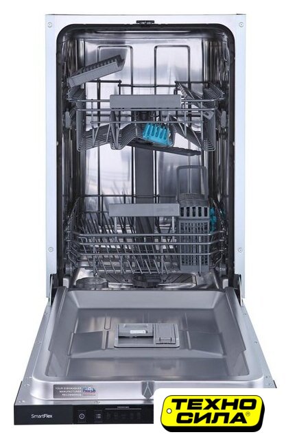 загрузка на 10 комплектов посуды, сенсорное управление, 8 программ, 44.8×55×82 см, черный цвет, сушка: активная конденсация, половинная загрузка, индикация на полу: луч