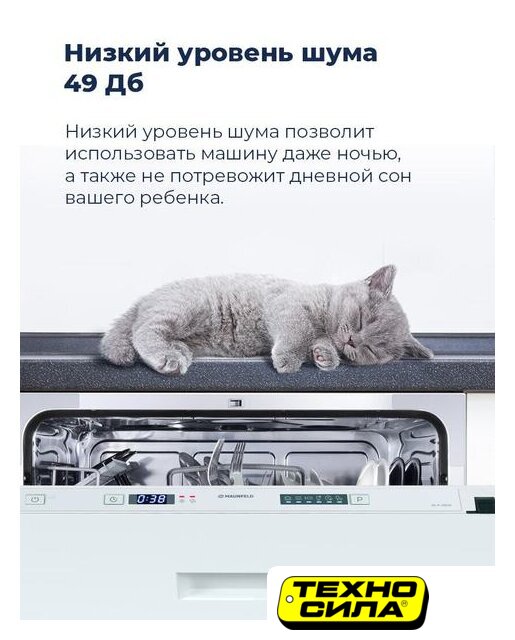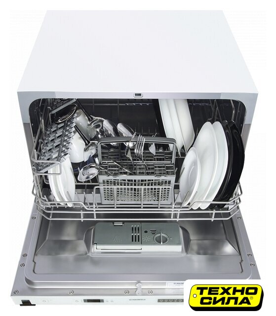 загрузка на 10 комплектов посуды, электронное управление, 5 программ, 44.8x55x82 см, серый цвет, сушка: с теплообменником, индикация на полу: нет