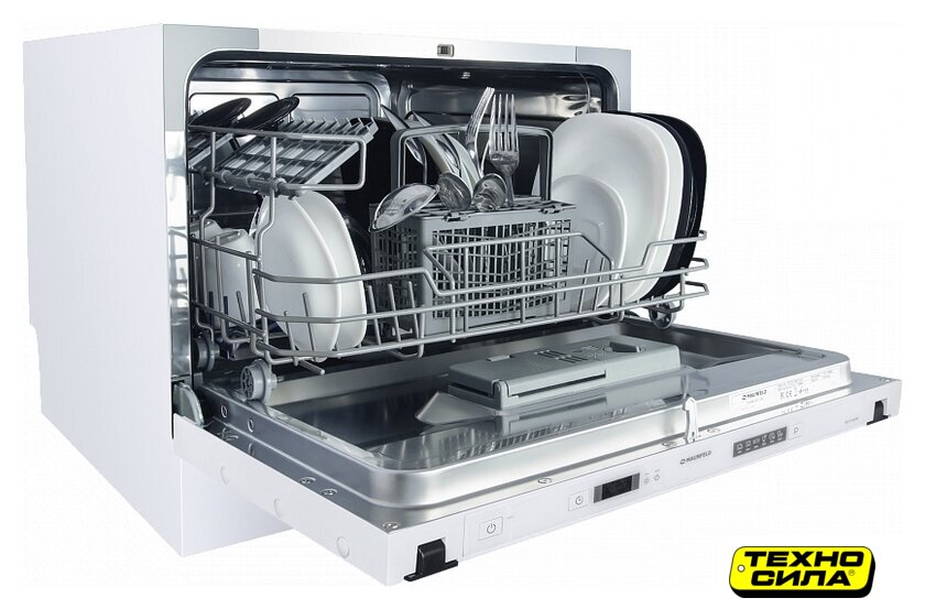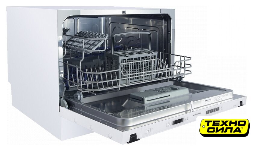 загрузка на 9 комплектов посуды, электронное управление, 5 программ, 44.5×55×82 см, черный цвет, сушка: конденсационная, индикация на полу: нет