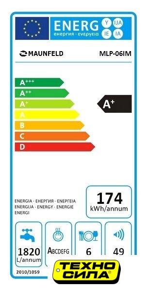 Расход электроэнергии за цикл | 0.61 кВт·ч |