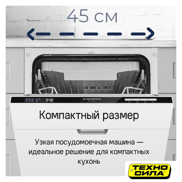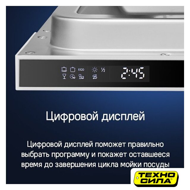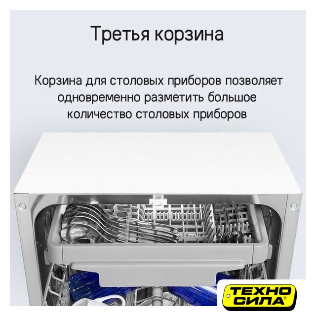 загрузка на 11 комплектов посуды, сенсорное управление, 8 программ, 44.8x55x82 см, черный цвет, сушка: стандартная (конденсация), индикация на полу: луч