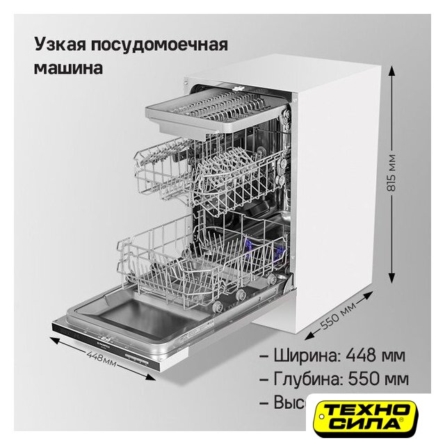 загрузка на 11 комплектов посуды, электронное управление, 8 программ, 44.8x55x82 см, черный цвет, сушка: конденсационная, индикация на полу: луч